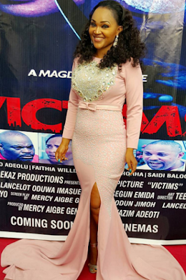 Photos: Fathia Balogun, Mercy Aigbe stun at movie premiere zulqar 10:43 A+ A- Print Email Actress Mercy Aigbe-Gentry looked stunning in this lovely pink gown at her movie premiere yesterday November 1st. Her colleagues Fathia Balogun, Biodun Okeowo and Comedian Seyi Law attended the event. More photos after the cut...